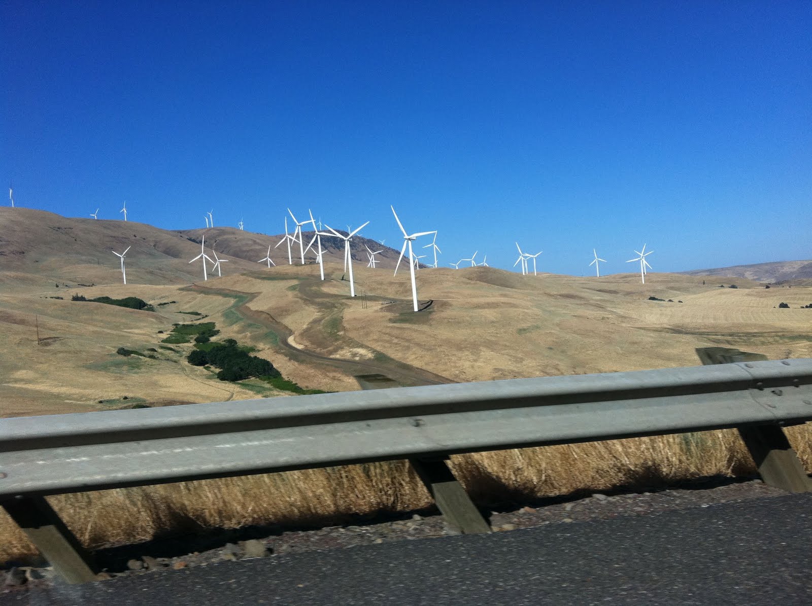 we trekked up to the gorge amphitheater for soundgarden and queens of the stone age over the weekend. the columbia river gorge is pretty famous for its high winds, so it makes sense to have fields of windmills “harvesting” it for power. it’s hard to judge their size from 70mph, but i feel like at the base, they’re probably as wide as my car is long. at least. i wanted to so bad to pull over and see one up close, but there were fences and barbed wire and i am a sissy-la-la rule follower by nature. the windmills are massive, beautiful, and a little haunting, in a the-future-is-now sort of way. i’d love to know how they decide where to plunk them down, since they seem to be scattered haphazardly across the ridges. i like this better than the neat rows that i always expected.