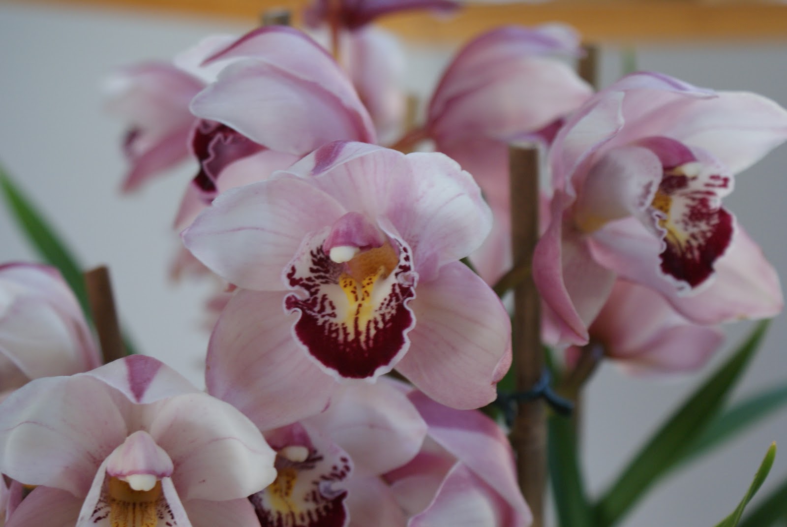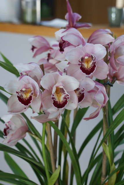 it is nearly time to say farewell to my friend the cymbidium. these blooms have been pilfered so many times to be wired, taped, or artfully (if i do say so myself) set inside a glass bulb with some moss. most of the blooms are fading now, intensifying in color with their advanced age and beginning to curl closed. one has fallen off entirely, for now resting in the tangle of leaves in the center of the pot. i shall fish it out when i am less sad about it.